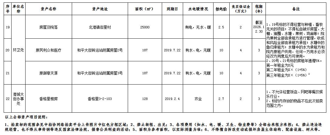 對“海港區2019年第三批國有資產租賃權”進行公開拍賣。